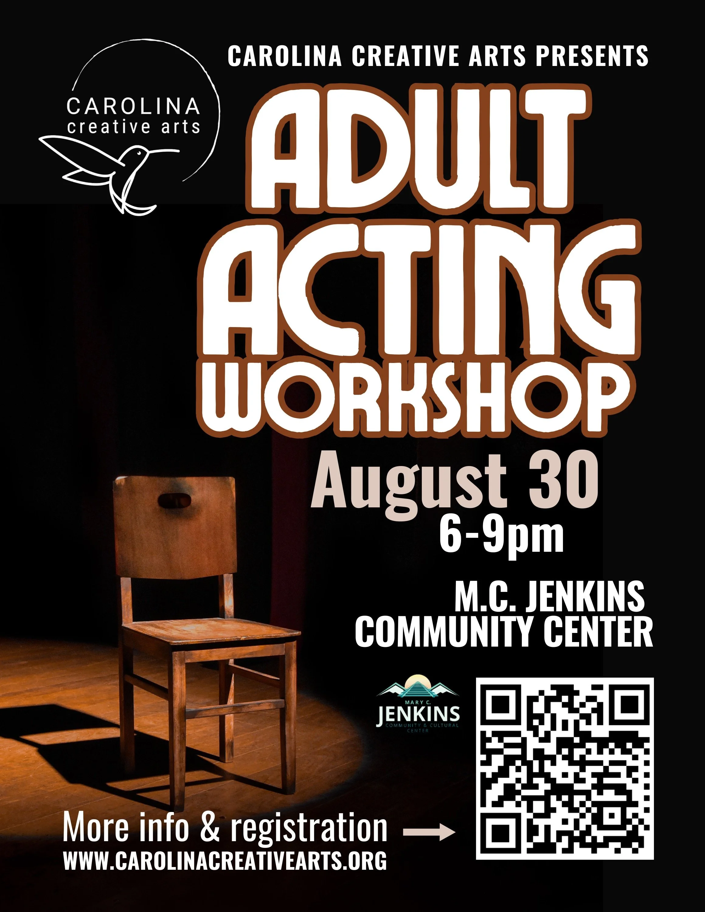 Quick View Acting Workshop (Ages 18+) Aug 30 $45.00 6PM-9PMA 3-Hour Intensive Acting Workshop with focus on Meisner technique, on-stage, on-film acting and Improv Acting!All levels of experience welcome (as well as beginners!)In the Community Room at M.C. Jenkins Community Center Purchase